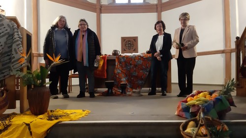 Der WGT der Ev. Kirchengemeinde Bad Berleburg findet immer im Wechsel der Ev. und Kath. Kirchengemeinde statt, in diesem Jahr in unserer Ev. Stadtkirche Bad Berleburg. Evangelische und katholische Frauen haben ihn zusammen vorbereitet und gestaltet. Pfarrerin Liedtke gab einleitende Informationen zu Nigeria mit Fotos. Sie leitete auch den 7-köpfigen kleinen Chor, in dem spontan Lucie aus Nigeria mitsang, die auch einen eigenen Beitrag in der WGT-Liturgie sprach, in dem sie Nigeria und ihre Wahlheimat Deutschland gegenüberstellte: "Vieles ist schlechter in Nigeria, aber das Wetter dort ist besser als hier." Kelvin, ebenfalls aus Nigeria, freute sich, dass er die meisten Lieder mitsingen konnte, weil sie ihm vertraut waren. Und auch die versammelten Menschen, ließen sich mitreißen von den beschwingten und eingängigen Melodien, die der Chor dreistimmig begleitete.