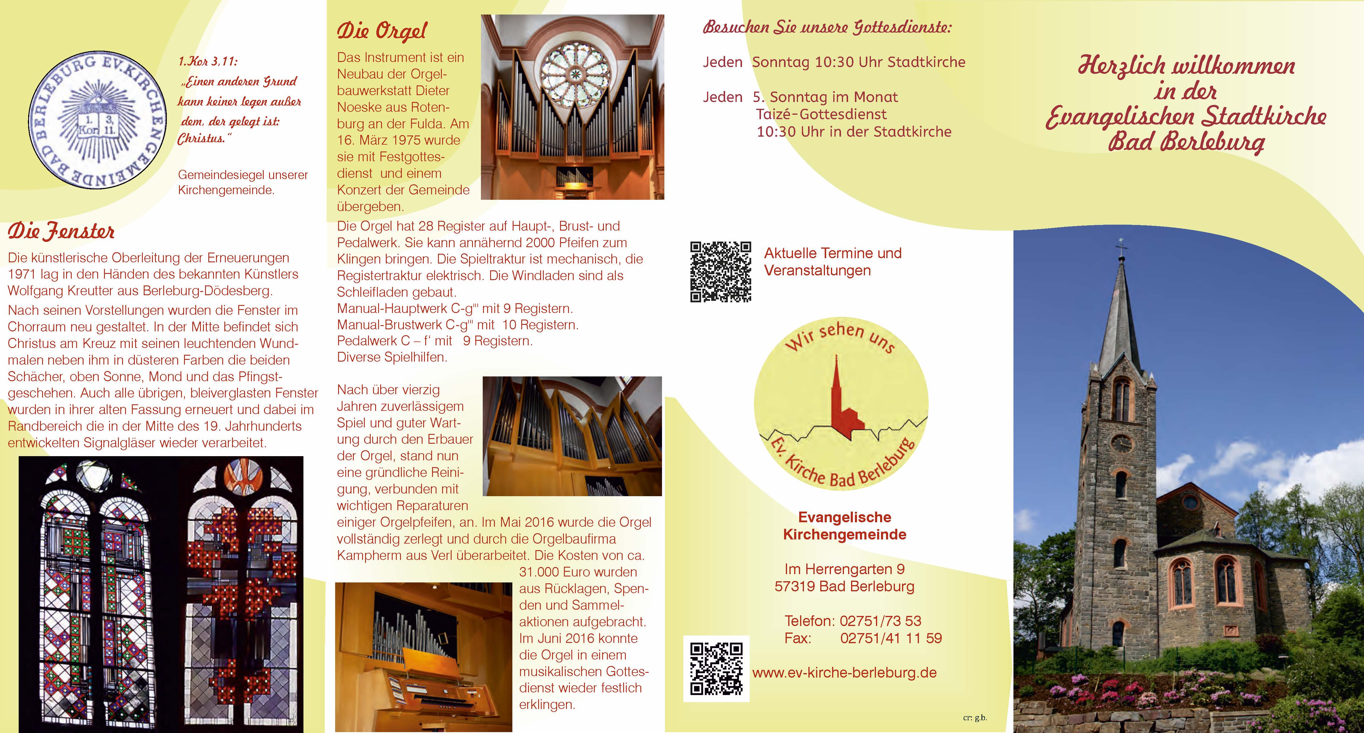 Nach über vierzig Jahren zuverlässigem Spiel und guter Wartung durch den Erbauer der Orgel, stand nun eine gründliche Reinigung, verbunden mit wichtigen Reparaturen einiger Orgelpfeifen, an. Im Mai 2016 wurde die Orgel vollständig zerlegt und durch die Orgelbaufirma Kampherm aus Verl überarbeitet. Die Kosten von ca. 31.000 Euro wurden aus Rücklagen, Spenden und Sammel-aktionen aufgebracht. Im Juni 2016 konnte die Orgel in einem musikalischen Gottes-dienst wieder festlich erklingen.